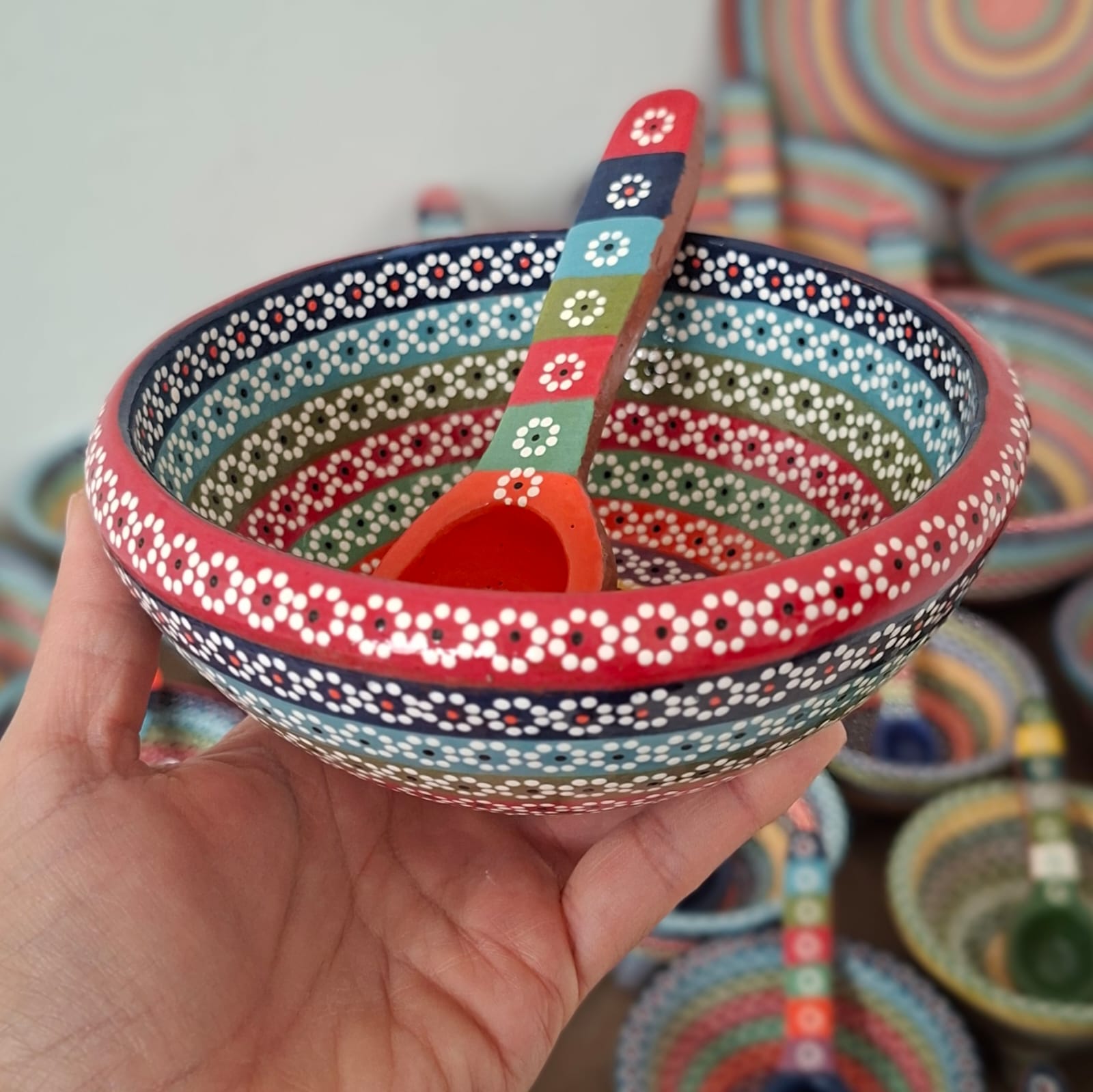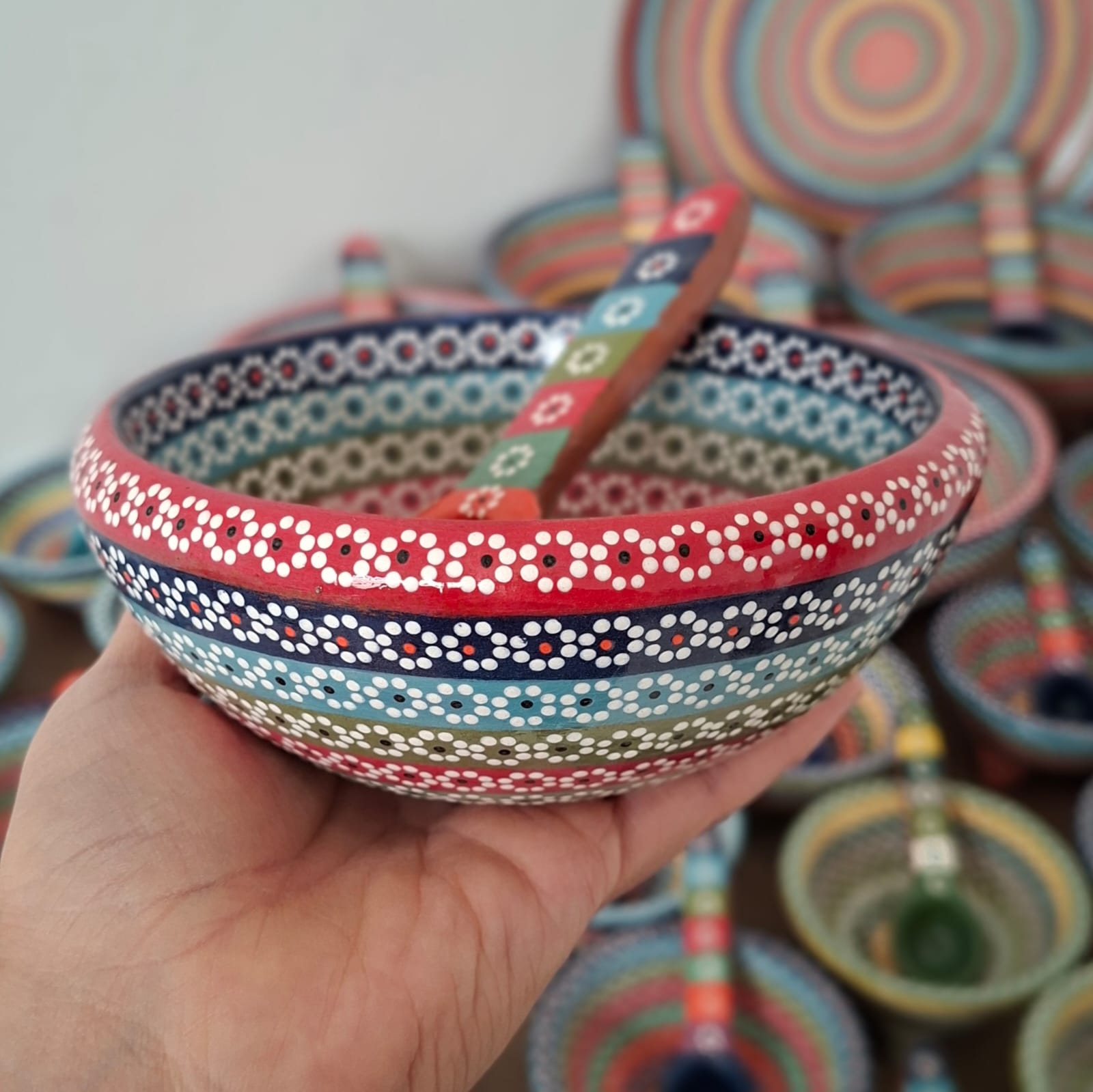 | Tazón originario de Capula, con el tramado característico de la zona. Fondo de color sólido con sellos florales al rededor. Todo esmaltado y elaborado en barro.Ideal para consomé, sopa o pozole. Soporta altas temperaturas. Puede meter al horno de microondas. Medidas: Diámetro: 14 cms., alto: 5.5 cms. Pieza libre de plomo. |