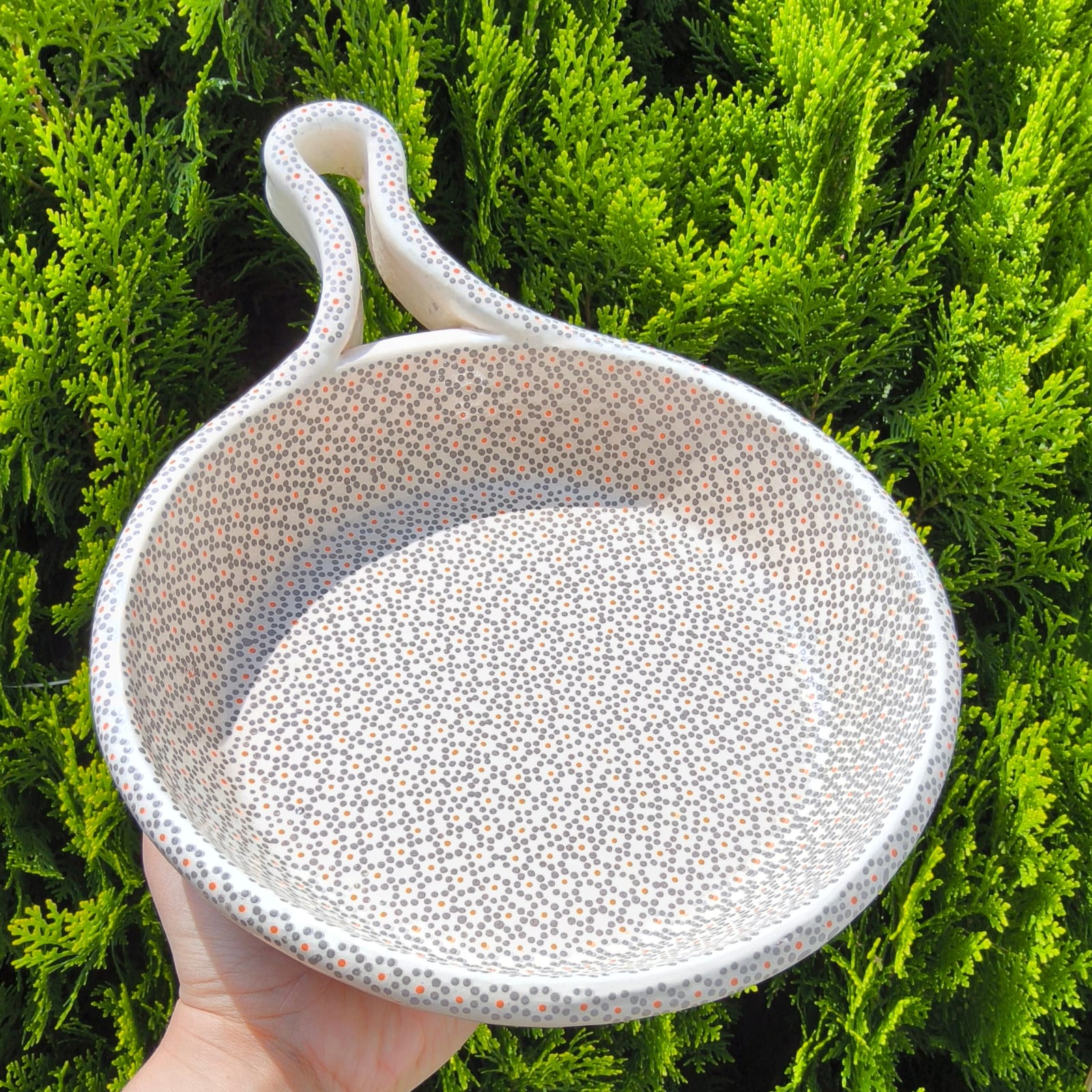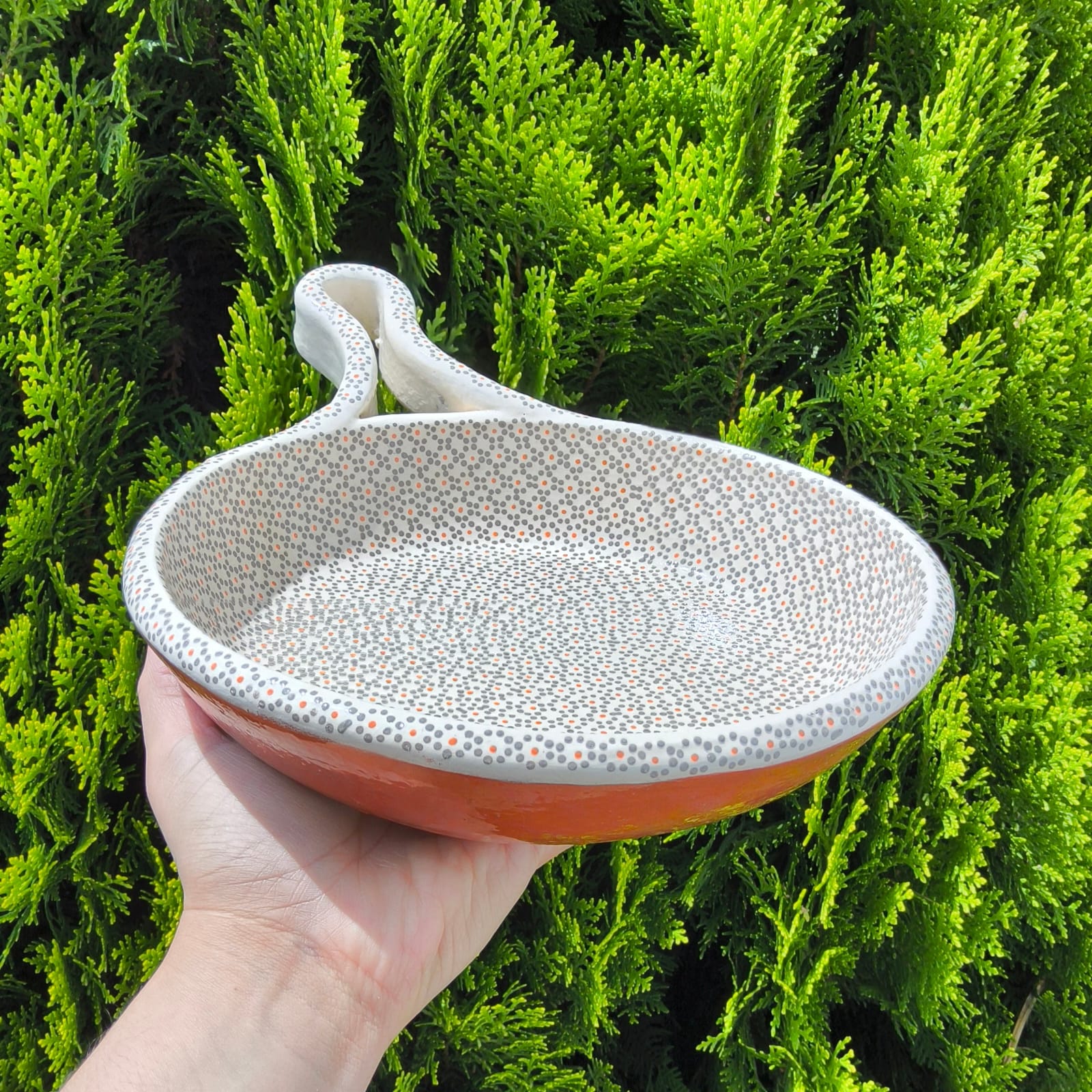 | Sartén originario de Capula, con el tramado característico de la zona. Fondo de color sólido con sellos florales al rededor. Todo esmaltado y elaborado en barro. Ideal para calentar guisados. Medidas: Largo: 29 cms, Diámetro: 21 cms., Alto: 5 cms. Pieza libre de plomo. |